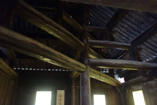 一柱十二梁建筑奇观。其主体立柱在最上层又托架起十二根梁,被誉为中国古建筑的奇迹。