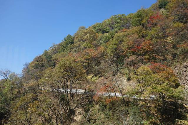 呈现在我们面前的已经是秋景,树木色彩斑斓,美丽无比。