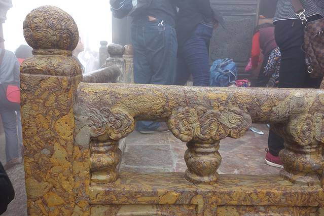 金殿周边的围栏看上去不起眼,其实是上亿年前的虫子和竹子的化石哦。
