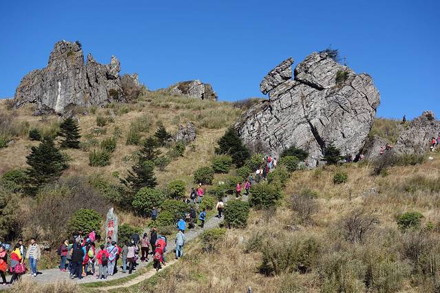 第三天一早进入神农架景区。门票是联票,319元。可以乘坐景区大巴到达各景点。我们在神农架一共游览了一天半时间。第一天是金猴岭、神农谷、神农顶、板壁岩景区、大九湖湿地公园、小龙潭观赏金丝猴。