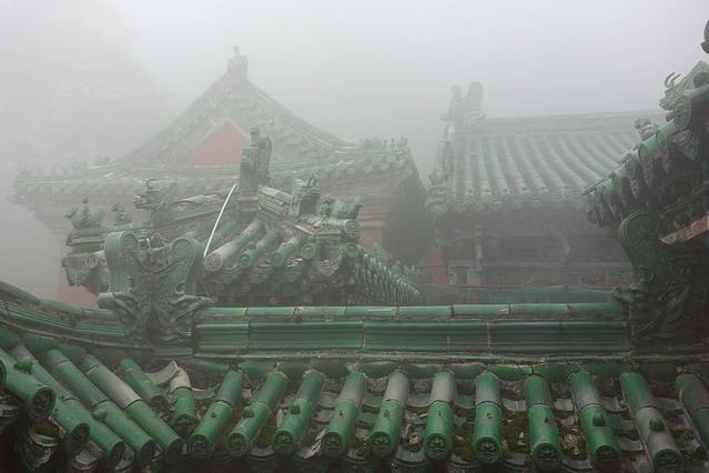 武当山,云雾缭绕、险山秀峰。