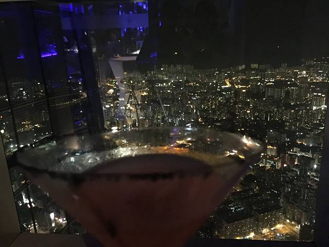 顶楼也可以看夜景,基本没人,按电梯时记得叫前台帮你刷下卡。喝的是白葡萄酒。价格在100-200港币一杯
