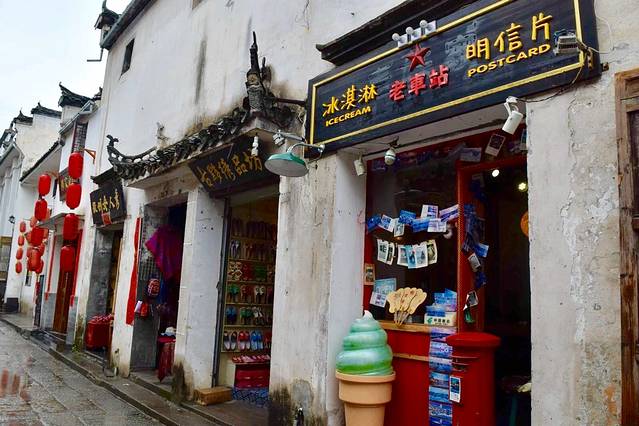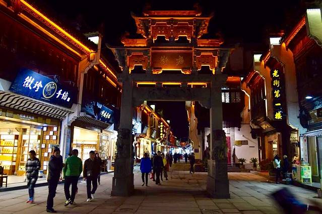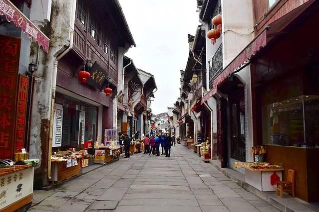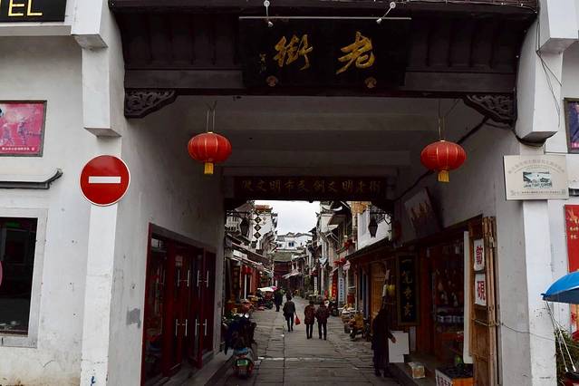 结束了宏村的行程,在景区门口购买了去黄山汽车站的票,20好像,本想从汽车站坐大巴回南京,却因为当天的票已卖完,无奈改为火车,时间尚早,就去了屯溪老街转转。 屯溪老街坐落在黄山市屯溪区中心地段,距今已有数百年历史,是目前中国保存最完整的、具有宋、明、清时代建筑风格的步行商业街。 老街两旁店家鳞次栉比,多为双层砖木结构,清一色的徽派建筑风格,当地人说,老街才是最正宗的徽派建筑。。。