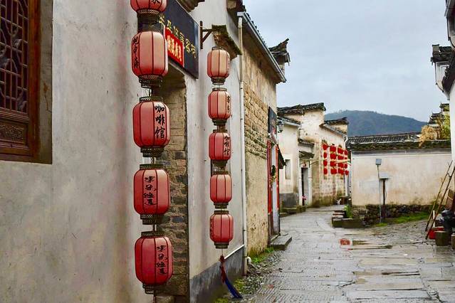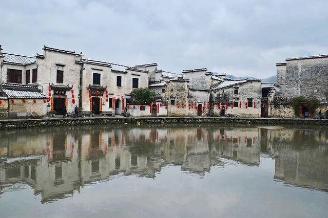 宏村镇主要旅游景点:宏村景区、屏山景区、卢村景区、木坑景区、塔川景区,建筑主要是住宅和私家园林,也有书院和祠堂等公共设施,建筑组群比较完整,且都离得不远,时间充裕的亲们可以来个周边游,景致都不错。同时,宏村多年来受海内外众多电影电视制作人及诸多导演的青睐,成为闻名遐迩的天然影视拍摄基地,有《卧虎藏龙》和《苏乞儿》之类的经典古装动作片在宏村取景拍摄。本想趁人多之前多拍几张照片,本不想天公不作美,没多久就下起雨来,只好拿着相机回客栈。。。
