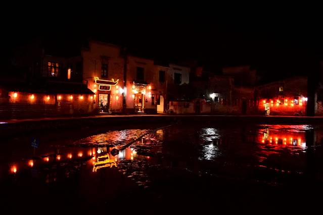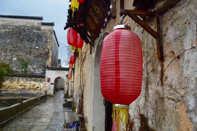 宏村,处于黄山区,是我此行最主要的目的,到达宏村的方式有多种,而我是坐泾县的高铁直接到了黄山北站, 北站有去往宏村的班车,车次很多,半小时左右一班,一个小时左右的车程,票价30。售票窗口就可以买宏村的门票,会优惠一点,另外,景区现场买票的或者电子取票的亲们到达景区的取票处,用身份证登记可以免费进出景区3天,门票104,网上订票94。晚上八点多才到达景区,夜幕下的宏村,没有了白日里的喧嚣,高挂的红灯笼零星点缀着这安静的村子,出门遛弯的人比较少,没有多少灯光,容易走迷路。。