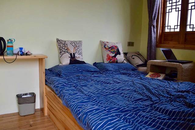 今天入住的也是一家青年旅舍,叫“过客旅人”,在景区里面,听着名字就很契合青旅的意义,不大的门面,门前种有花草,大厅很宽敞,前台可以点咖啡和甜点,店里也有一些明信片可供选择,晚上的时候,可以看看电影,兴致来的时候,老板会弹上一曲吉他,偶尔也不乏组织店里的客人玩上几把杀人游戏。夜深人静之时,躺在床上就可以听见外面潺潺的流水声,听着很是舒服,顿时就能有让人沉静下来的力量,那时候就感觉和大自然如此亲近。。