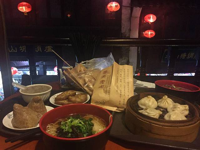 终于到了吃饭时间,找了家山塘街的铺子,上了二楼,点了一大桌子,三个人美美哒开