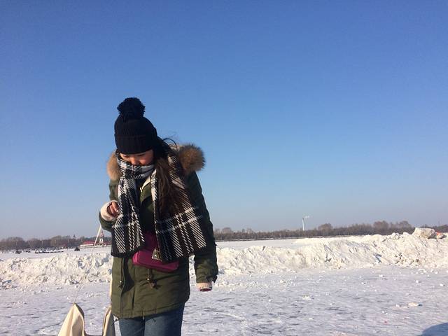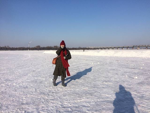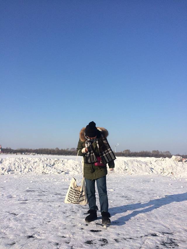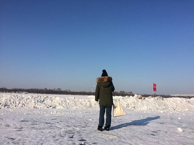 走过松花江就到了太阳岛公园,很大,可以坐观光车游览,一上岸就有,但听说冬天的太阳岛没什么好玩儿的,于是我们又原路返回,又小心翼翼的过了一次江。(其实我不知道对面是太阳岛公园,离市区很远,以为过去随便找个公交站就可以去下一个目的地,大不了转一次车,要早知道我肯定不过去,主要是走在冰上有阴影。