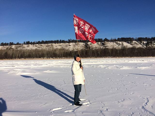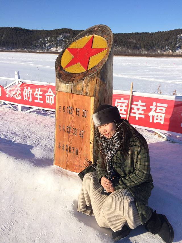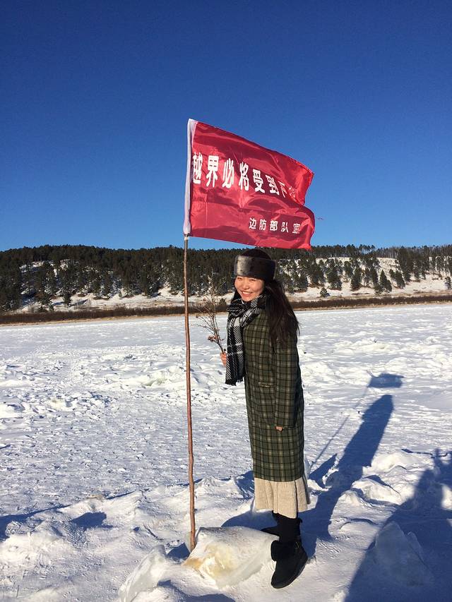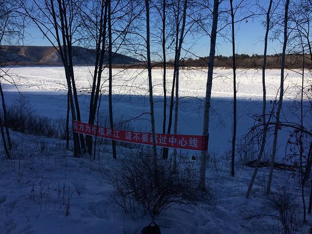吃过早饭又去界江上玩儿~真的好冷,嗯,脸冻红了。