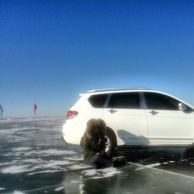 呼伦湖,司机有通行证就没要门票,湖上结了厚厚的冰!开车漂移真的超爽好吗哈哈哈