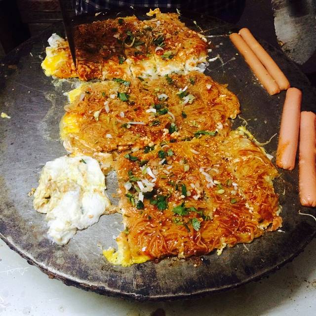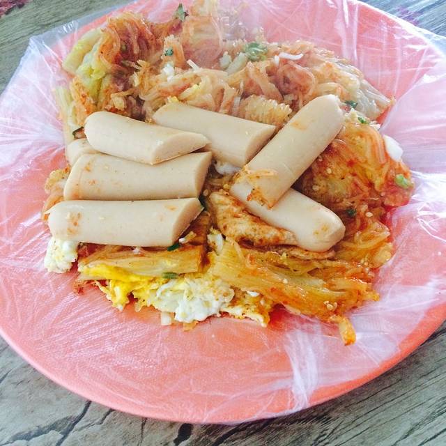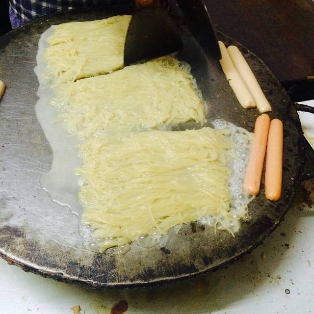 烤冷面!和我在天津吃的不一样~喜欢~到了县城吃东西就很实惠了。五块一份儿。