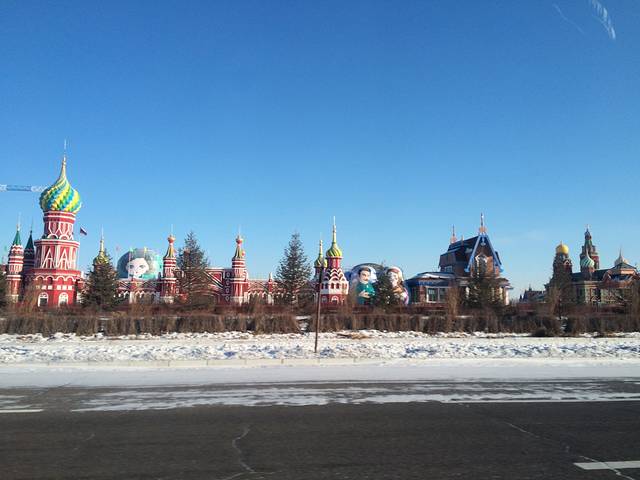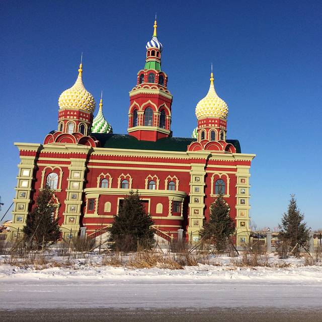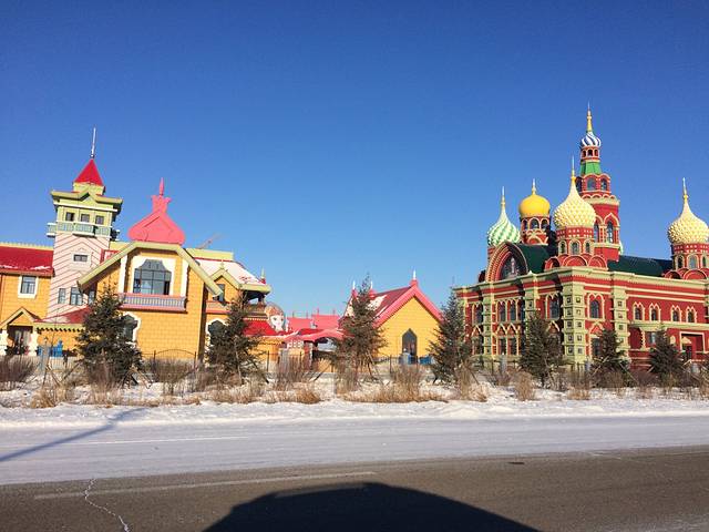 满洲里真的太有异域风情了,随随便便路上一拍都可以假装在俄罗斯。套娃广场,超级可爱呀哈哈哈。里面很大,我们去的时候刚好赶上维修,没能进去逛逛实属遗憾,不过有遗憾才会有重逢!司机就带着我们围着套娃广场转了一圈~从外面看都美美哒!