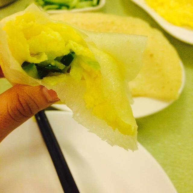 到了中央大街先找吃饭的地儿,老昌春饼,感觉几乎所有的游记都推荐了,的确好吃!
