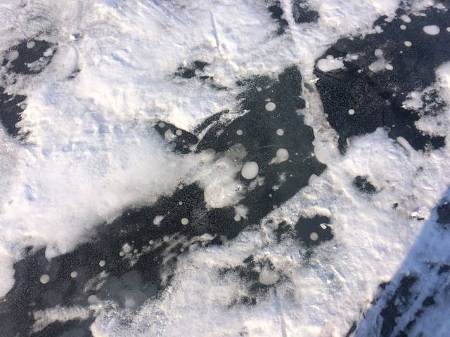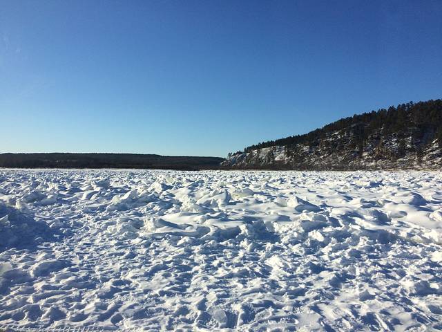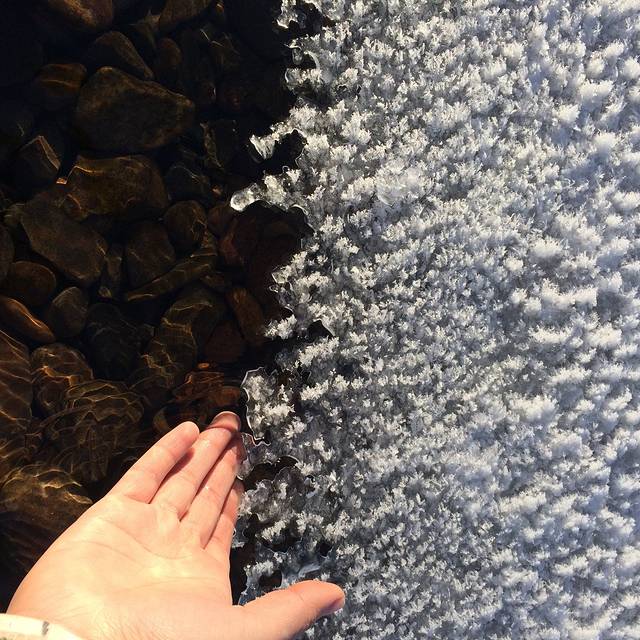 没有被冻上的江水!真的好神奇啊!我们还用手捧起喝了一口哈哈哈。