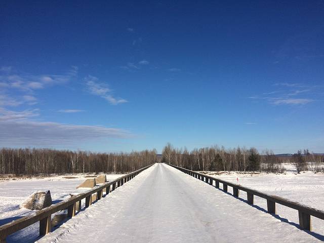 这好像是六三大桥哇,插一句,到了漠河明显感觉游客多了,虽然可能由于气温原因并没有中国节假日旅游景点的那种盛况,但是比起呼伦贝尔真的多了好多,要知道在呼伦贝尔一路基本就只有我们。