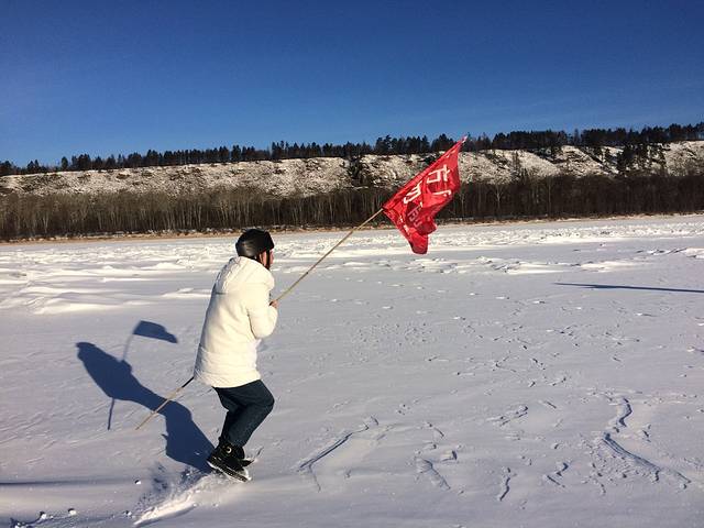 然后就走到了松花江,江边有各种冰上娱乐设施,我们并不是特别感兴趣,不过看大家玩儿的很嗨。