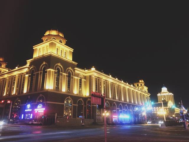 吃过饭就慢悠悠溜达回去,欣赏满洲里夜景!好漂亮啊!满洲里街上到处都是俄罗斯商店,司机说有真有假的,我俩凭借的直觉和智慧进了一家店,进对了。还聊嗨了哈哈哈。