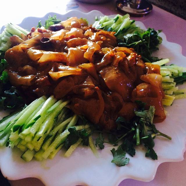 我们两个人点了筋饼春饼各两张,麻酱拉皮儿,锅包肉。