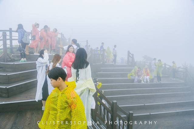 别人照片里海水清澈的牛岛、景色壮观城山日出峰,我们通通看不到!只能穿着雨衣看雾、看雨。都说人生无常,旅行也一样,出门看天吃饭。但这也只影响了我们的心情一下下,接着我们又自high了起来:大家都看到一样漂亮的景色对不对,有几个人能看到我们所看到这些腾云驾雾的风景呢,hiahia~然后一边爬山一边欢快地跟雨雾自拍发在微信群里跟家里人分享这次囧途。