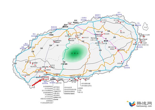 结合网上的攻略,按照地理位置和景点性质,我归纳总结了几个大方向的景点以及交通路线,分享给有需要的童鞋们~保证看完后对济州岛的景点位置了如指掌!