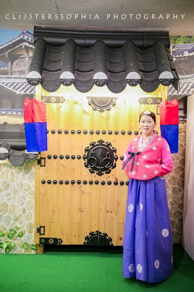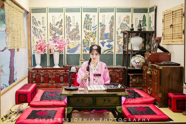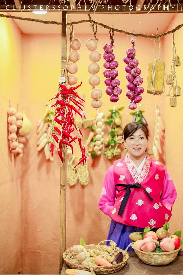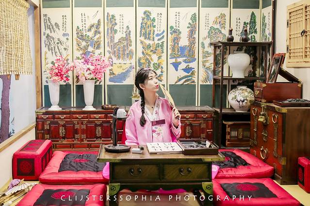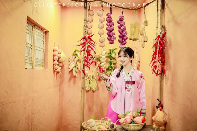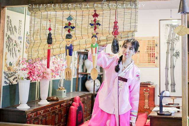 两人坐在二楼的cafe里百无聊赖,决定出去走走,还想着要不要去昨晚逛街的时候一个老板娘推荐的汗蒸,突然发现对面街放了一个很大的穿着韩服的公仔,走近一看发现原来是韩服体验馆。