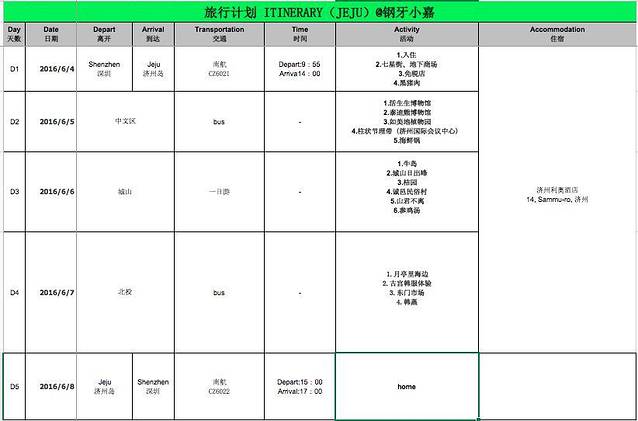 深圳到济州岛只有南航、深航有直飞,每周只有固定一个航班往返,所以机票很少打折,一般在2500-3000左右,不过南航的往返时间非常好,算是早飞晚回,附带23kg行李。回国的时候我们俩的行李都刚刚好控制在上限,真是会买。