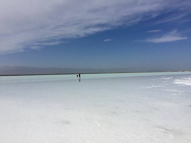 茶卡盐湖也是当地人收的门票,30元,租的套靴10元,大家在盐田里玩的不亦乐乎,师傅说光茶卡盐湖的盐就够中国人吃个60年的。