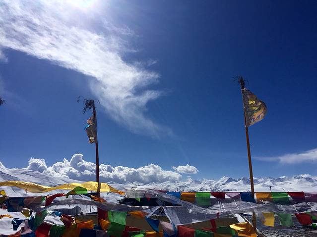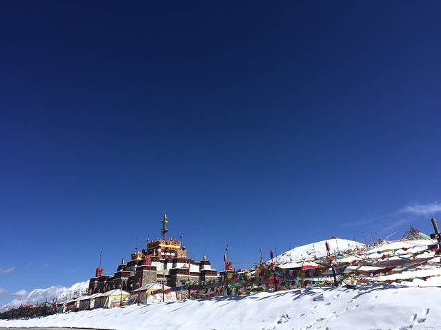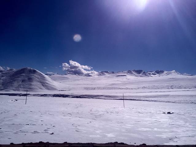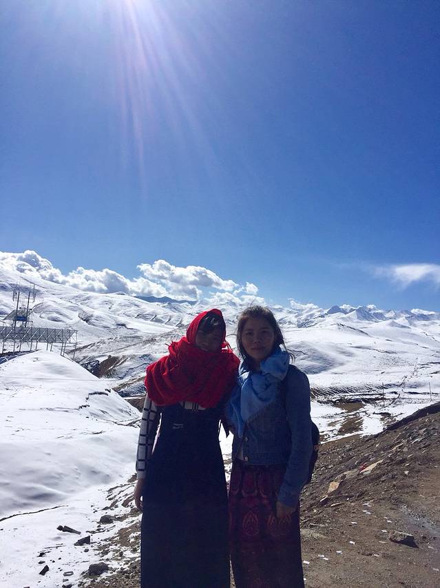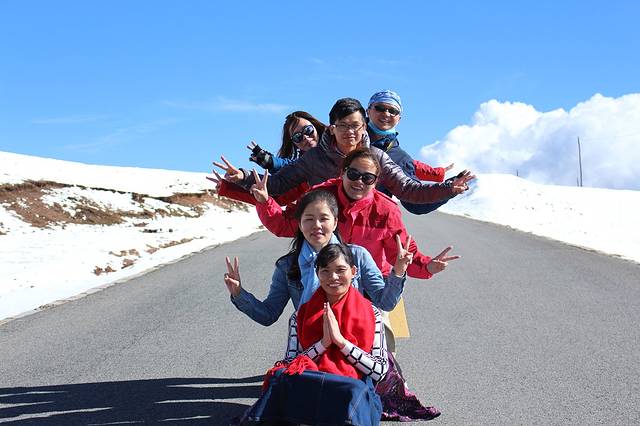 下午司机带我们走的线路,不远处能看到日月山,师傅说看头不大,我们就没有下车。等到了海拔3800米的拉脊山,发现居然山头全是雪,纯净的天空下的雪景真是美轮美奂,小伙伴们全部欢快的跑下车去拍照了。