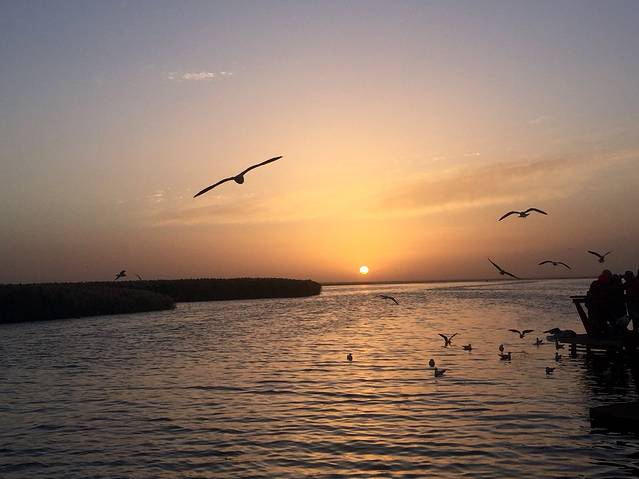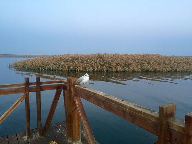 我和闺蜜都是那种身体素质还不错的人,考虑到后段行程,查看了网上攻略之后,决定一天把居延海和胡杨林景区全部逛完。由于从额济纳旗城区到居延海没有公共交通,提前一天约了出租车司机清晨5:00多来接我我们去居延海看日出(车费每人100元),到了景区走了很长一段路才到达老子骑牛景点,由于对天气实在预估不足,真是冻得瑟瑟发抖,鼻涕横流。