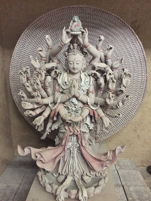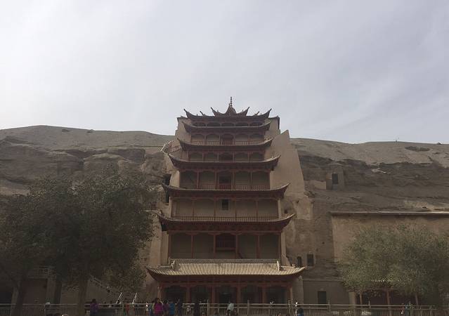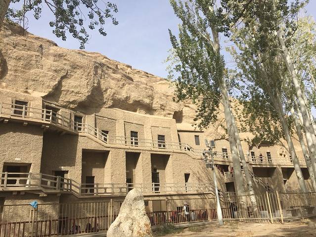 莫高窟的外墙都是后建保护石窟的,从展览的图片来看以前损毁的很严重,导游告诉说上图白色带画的墙面还是宋代的原作。