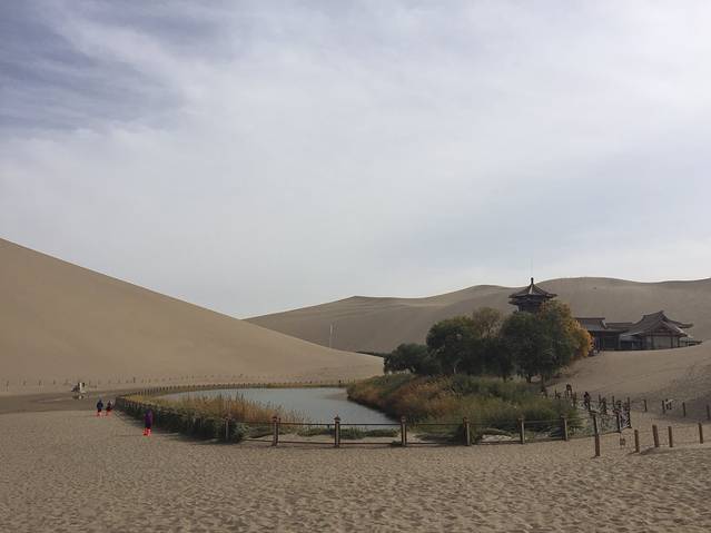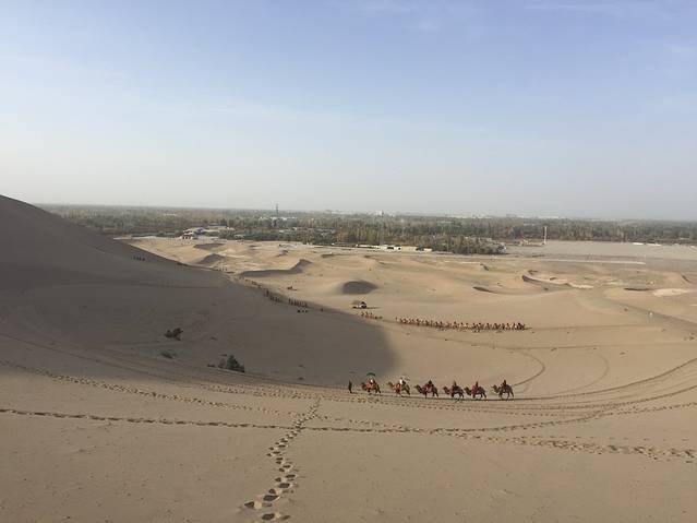 从莫高窟出来已经快下午三点了,下一个行程直奔鸣沙山月牙泉,门口的士都要价40元。