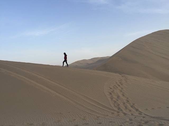 沙山完全颠覆了我对沙子的认知,又细又软,和建筑沙截然不同,沙山很难走,走一步退半步。因为我有恐高症,沙山差不多算是很狼狈的爬上去的,还是在闺蜜大力扶持下。