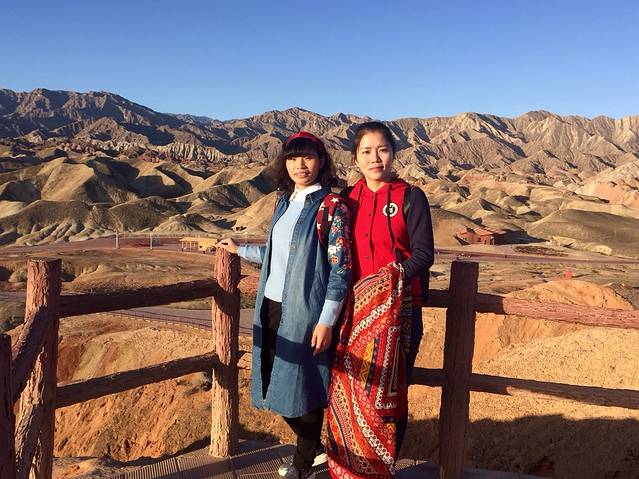 当天高铁赶到张掖,途中闺蜜还顺利预约到一台滴滴顺风车,平时打的120元,居然只收了45元,哈哈。到了张掖,发现小镇很漂亮,家家户户全是别墅式的家庭旅馆,当晚只有我们入住,老板还提前打电话联系,一家三口都到门口来接我们,热情极了。