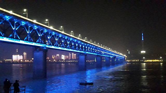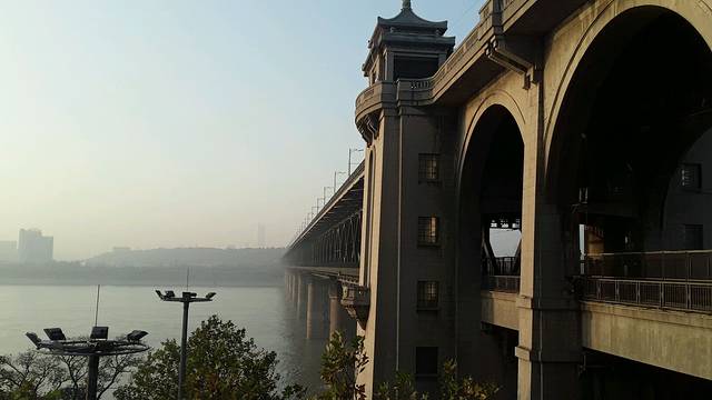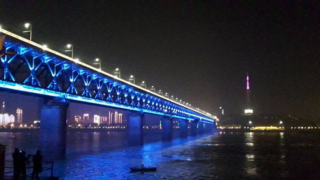 到了长江大桥的桥头,进入眼帘的是高耸的白色电视台,晚上的时候会变不同的颜色,配上长江大桥,是道靓丽的风景线!