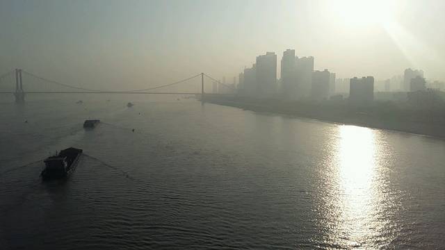 站在桥头看桥下车水马龙,在江边休息的老人们下棋,弹唱,所谓老有所乐!