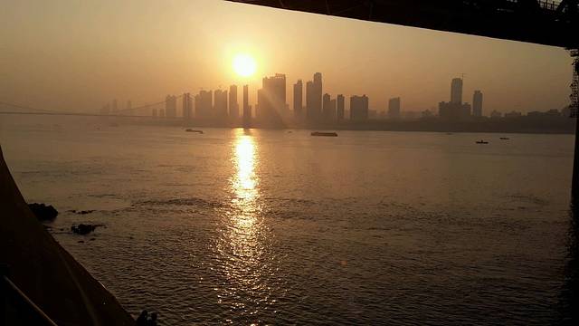 对岸是高耸入云的大楼,夕阳西下的景色非常迷人!