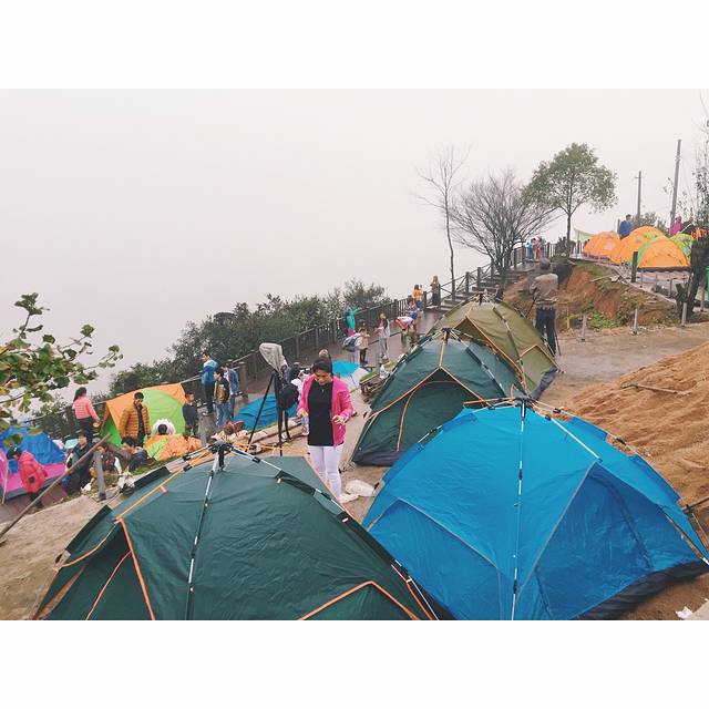 山顶 露营的人