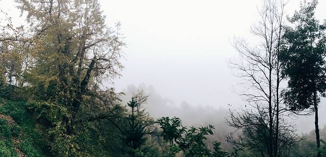 走到半山腰,雾气依然很重。