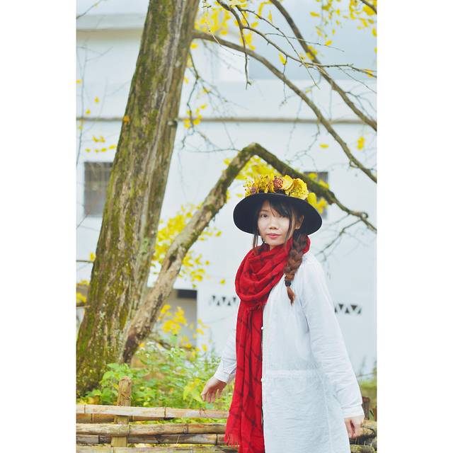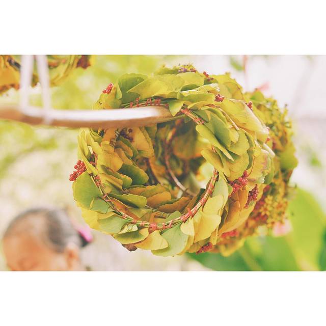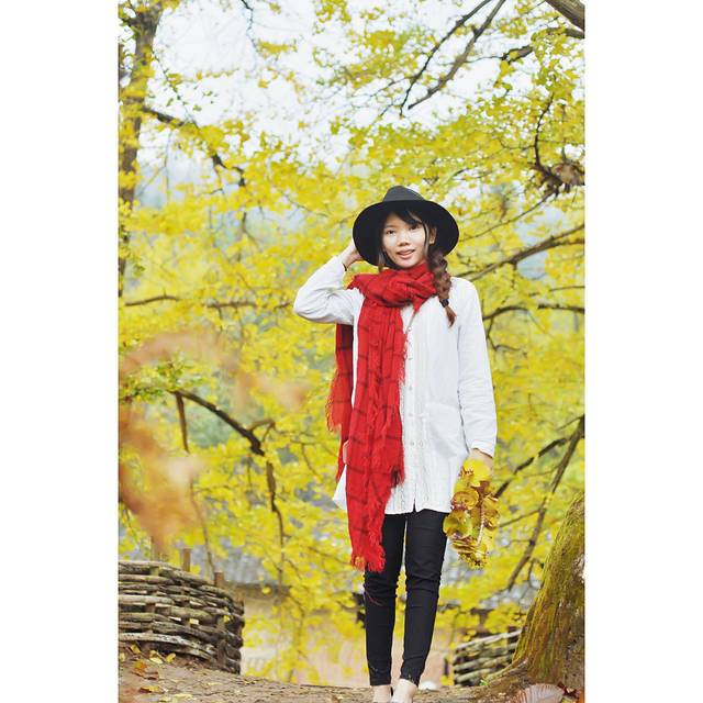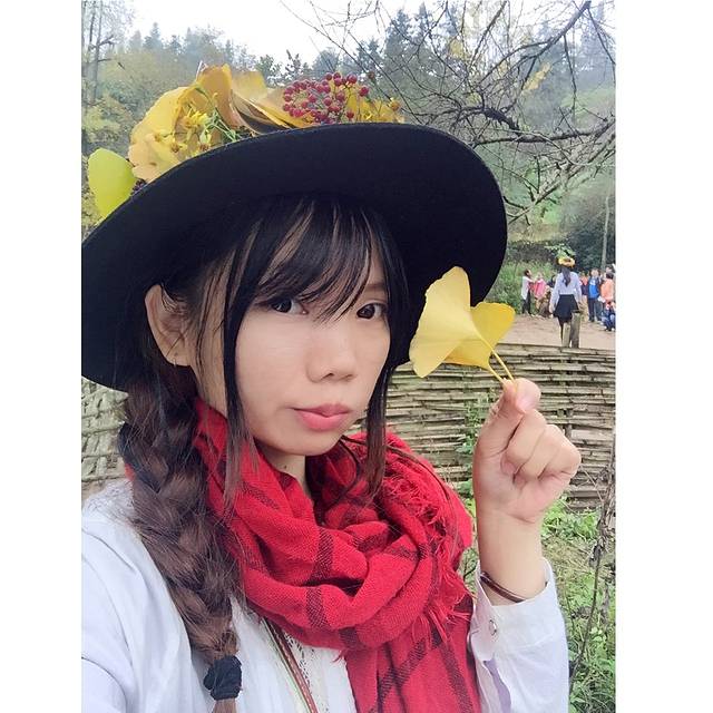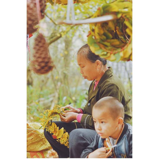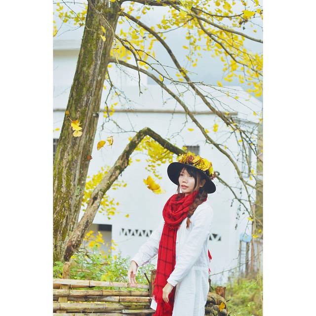 在景点的两侧都会有当地村民摆摊,卖点土特产,手工做些银杏叶头饰,我也帮衬买了一个。