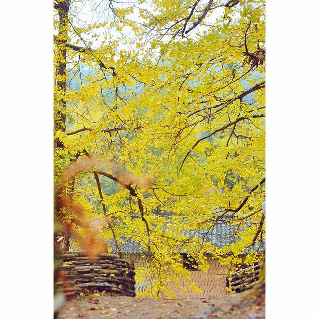 在军营寨看不到日出,山顶还是有许多银杏树,虽然没有蓝天很遗憾,但还是很好看的。