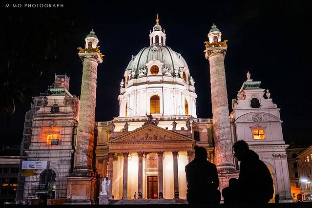 卡尔教堂,亦称查理教堂(唔...又是查理)位于卡尔广场南侧,它的对面就是著名的金色大厅。它是阿尔卑斯山以北最为人瞩目的巴洛克教堂建筑之一,拥有加长的椭圆形穹顶。1713年,神圣罗马帝国皇帝卡尔六世宣布如果可怕的鼠疫能够停止,他就建造一座教堂,瘟疫一结束,皇帝就下令建造了这座壮丽的巴洛克教堂。