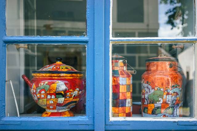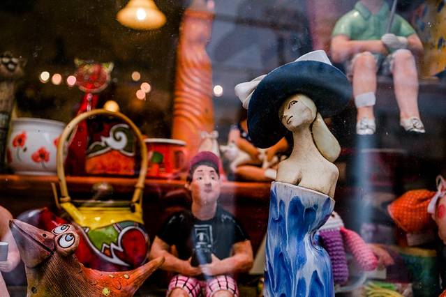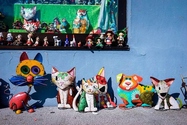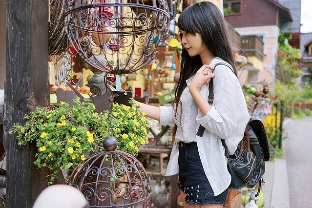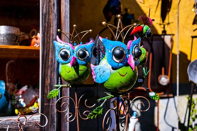 小镇上有很多奇奇怪怪的装饰品店。午后的小镇人不多,我把相机放在栏杆上,用手机遥控自拍。这一段旅行都没有小伙伴,所以只能自己帮自己留下纪念照。