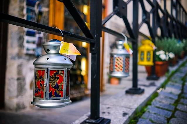 日落以后的小镇恢复安静,游客群一般不会在这里过夜,却因而错过小镇美丽的夜景。从城堡脚下的餐馆走回旅馆还有一小段路。昏黄的街灯在光滑的石板路上反射初柔和的光芒。两旁的精品店都已经打烊,橱窗里的灯却依旧亮着,展示着各种工艺品。