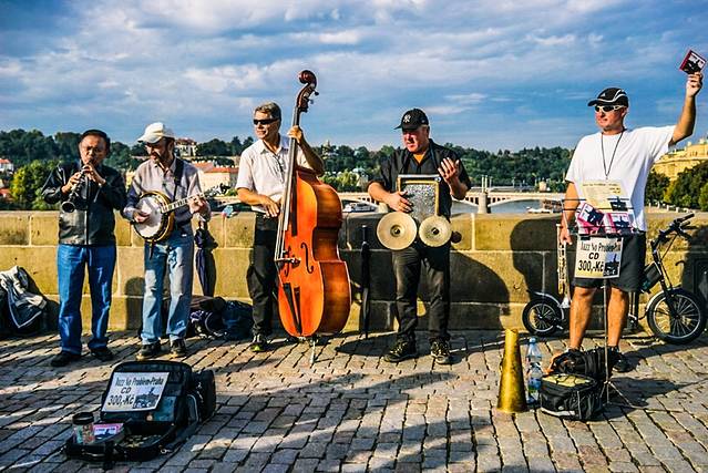 查理大桥上特别热闹,这里是卖艺者的天堂。每隔几步一个乐队,曲风各异,年纪跨度大,颜值参差不齐,喜欢的话买上一个CD,万一以后人家红了呢?