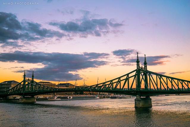 自由桥是布达佩斯多瑙河上我最喜欢的一所桥。好几个黄昏,我都在桥上走,虽然train经过时候那销魂的震动会让我害怕,可是这所绿色的钢铁桥在日落时分特别上镜。