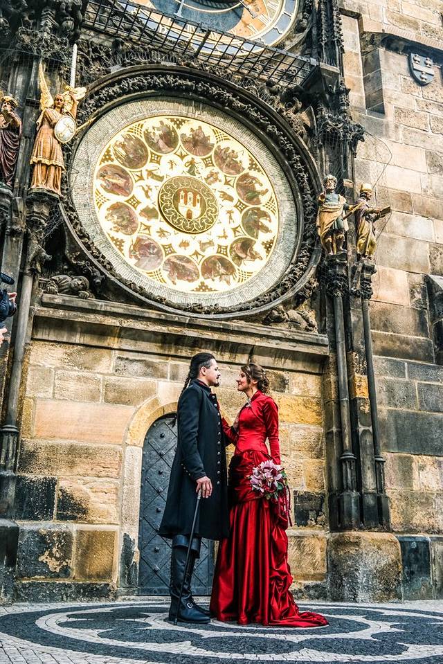 当天文钟的钟声响起的时候,我正走过布拉格广场。向天文钟奔跑而去,一群白鸽从身旁飞过,我踮起脚,在上千人群中仰望这座已有六百多年历史的大钟。天文钟上,那十二尊精美的耶酥门徒像从钟旁依次现身,六个向左转,六个向右转,随着一声雄鸡的鸣叫,窗子关闭,报时钟声响起。
