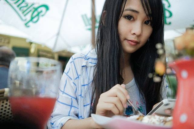 对于一个简装出行的妹子,自然连三脚架都懒得带,但是这不妨碍我的自拍,把相机放在别人停放在路边的自行车上,风起,撩头发,咔嚓,完成。