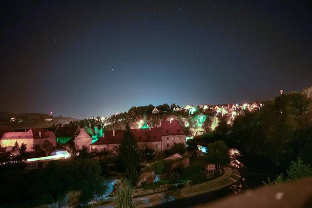 走过小广场,会看到一个半圆形得观景台,正对着城堡。古老的城堡的在满月和繁星下显得格外神秘,却又像一个勇士在守卫着这个美丽的小镇。