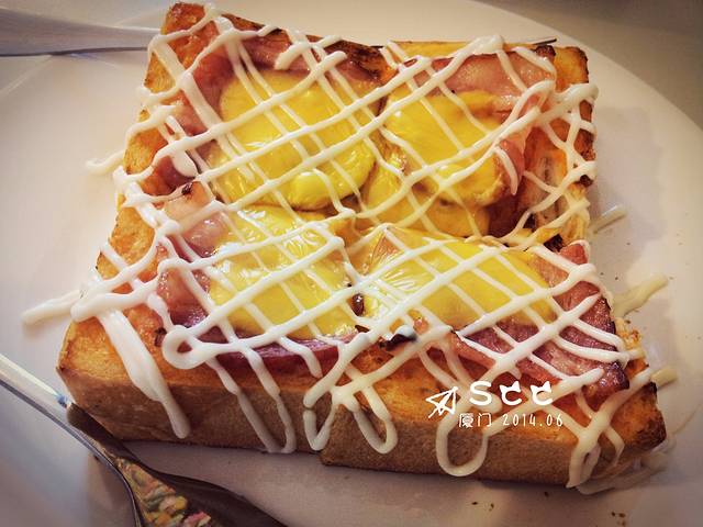早上在曾厝垵吃早饭,去了昨天没吃成的阿信厚土司~曾厝垵良心味道,很好吃!我们是都吃了一圈,这个是芝士的。