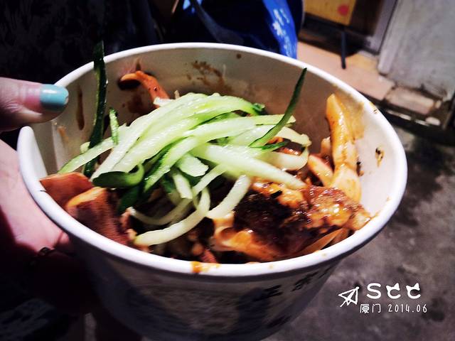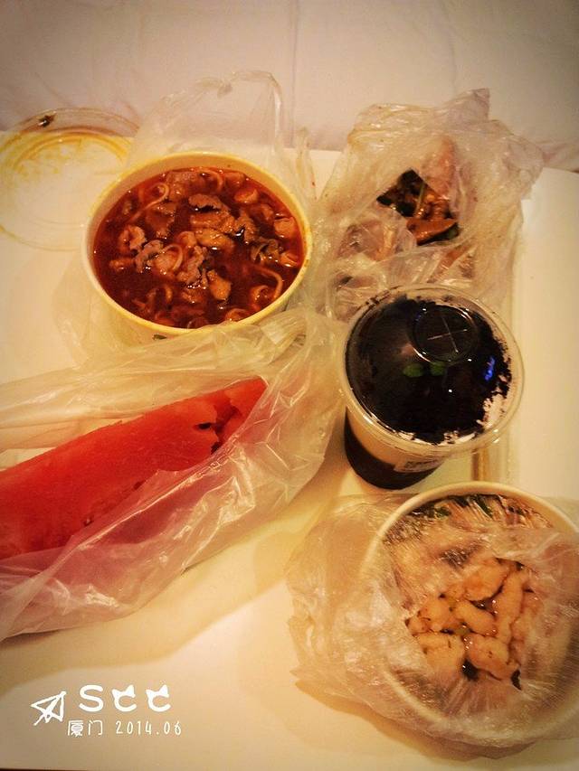 心远酒店在集美大学宿舍后门后面,大学后面是什么大家懂懂得,吃的太多了!!!小夜市的夜宵标准啊,可是为什么妹子还都那木瘦,太受伤了。利索的老板娘,这家店很多人哦。点了沙茶面,9块/份~